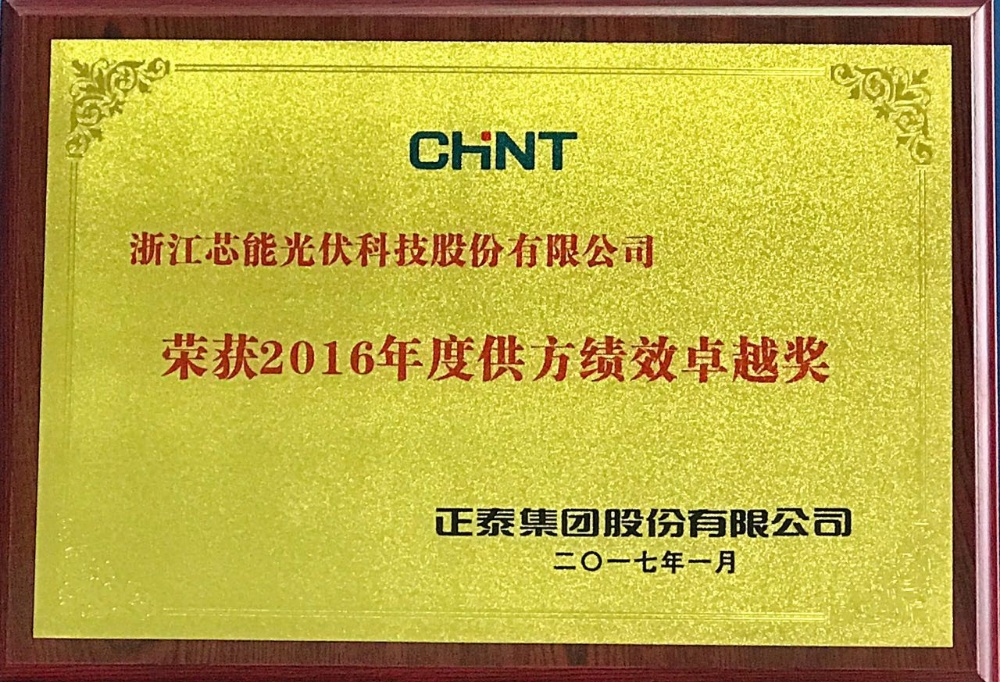 日前,LEwin乐玩科技荣获正泰集团股份有限公司颁发的2016年度供方绩效卓越奖。正泰集团作为国内的优秀企业,近年来一直是浙江乃至中国“走出去”企业的典范,其在光伏行业的影响力与日俱增。正泰集团下属新能源企业成立初期,LEwin乐玩科技便与之建立起合作关系。多年来,LEwin乐玩科技凭借多晶硅片的优异性能、稳定质量和长期可靠性赢得了正泰的高度认可和信赖,多次荣获正泰颁发的优秀供应商等荣誉奖项。同时双方在多个领域保持着战略合作伙伴关系,在包括项目开发、技术研发等领域开展深度合作。
