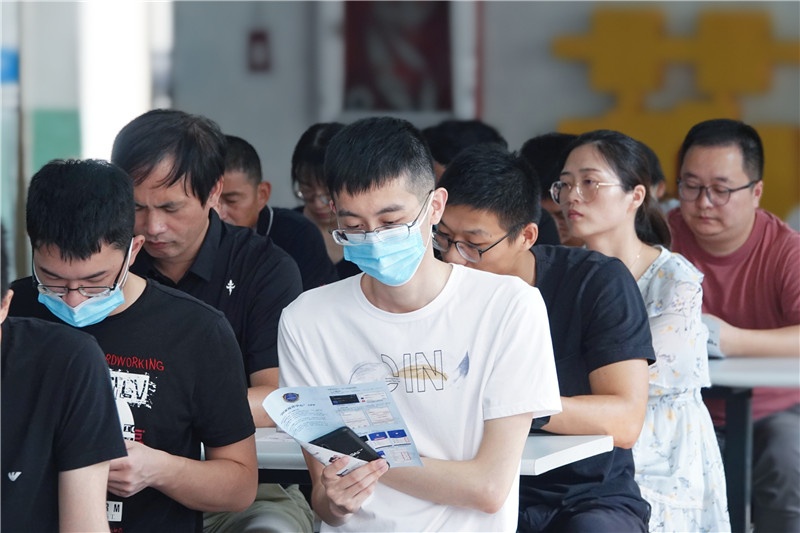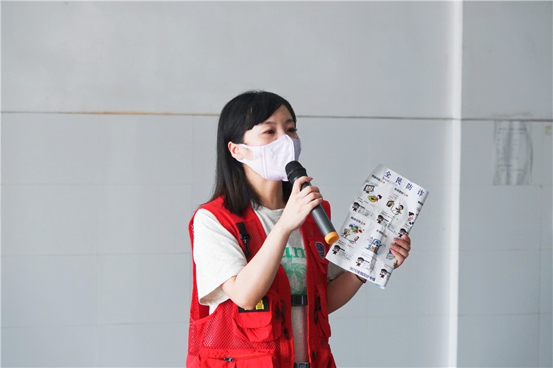 宣讲员通过发放宣传单的形式向大家普及防范电信诈骗知识,重点对网络交友诈骗、网上兼职刷单诈骗、杀猪盘诈骗、代办信用卡及贷款诈骗等现阶段电信诈骗高发案件类型的特点及手段进行讲解,并就其产生的危害以及预防办法展开介绍。随后,宣传队现场教学引导在场员工积极下载应用“国家反诈中心”APP。