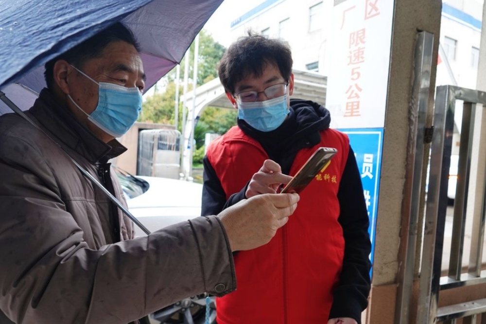 由于员工上班高峰期间门卫测温查码工作量较大,党员志愿者听闻后毅然加入查码队伍,努力守好公司防疫“安全门”。志愿者们每天在上班时段提前30分钟到岗,他们戴好口罩,身穿红马甲,对进入员工和车辆进行检测,引导员工有序测温扫码。