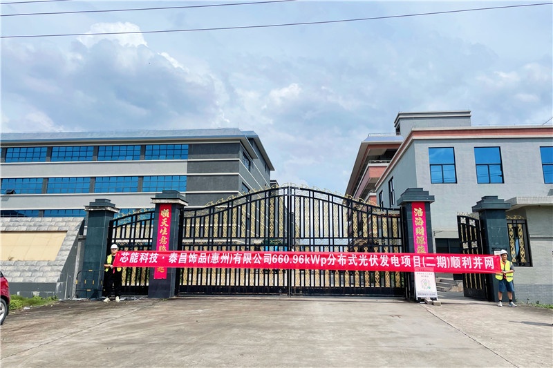 泰昌饰品(惠州)有限公司主营塑料类、玻璃类、布料类等装饰品加工制造等。本次项目是LEwin乐玩科技为泰昌饰品(惠州)建成的第二期分布式光伏项目,此前已完成一期0.8MW分布式光伏电站建设。