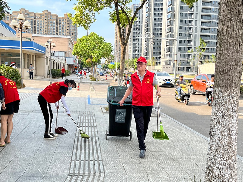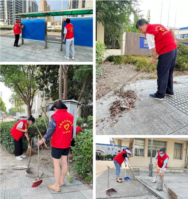 活动中,党员志愿者们统一佩戴党徽,身穿红马甲,手持扫帚等清洁工具,有条不紊地清除散落在路边、绿化带里的塑料袋、废纸等废弃物,并打扫了附近的公交站台。